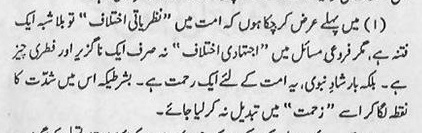 I (Maualan Yusuf Ludhiyanvi RA) had mentioned at the offset that the ‘ideological differences’ (Nazaryaati Ikhtilaaf) of the Ummat is without doubt a Fitnah. But, ‘Ijtihaadi Ikhtilaaf’ (the difference regarding interpretations of legal points), is not only inevitable and natural, in fact, it is a source of mercy for this Ummat. This will be so on this condition that no intensity is attached to it, thereby making it a source of trouble.