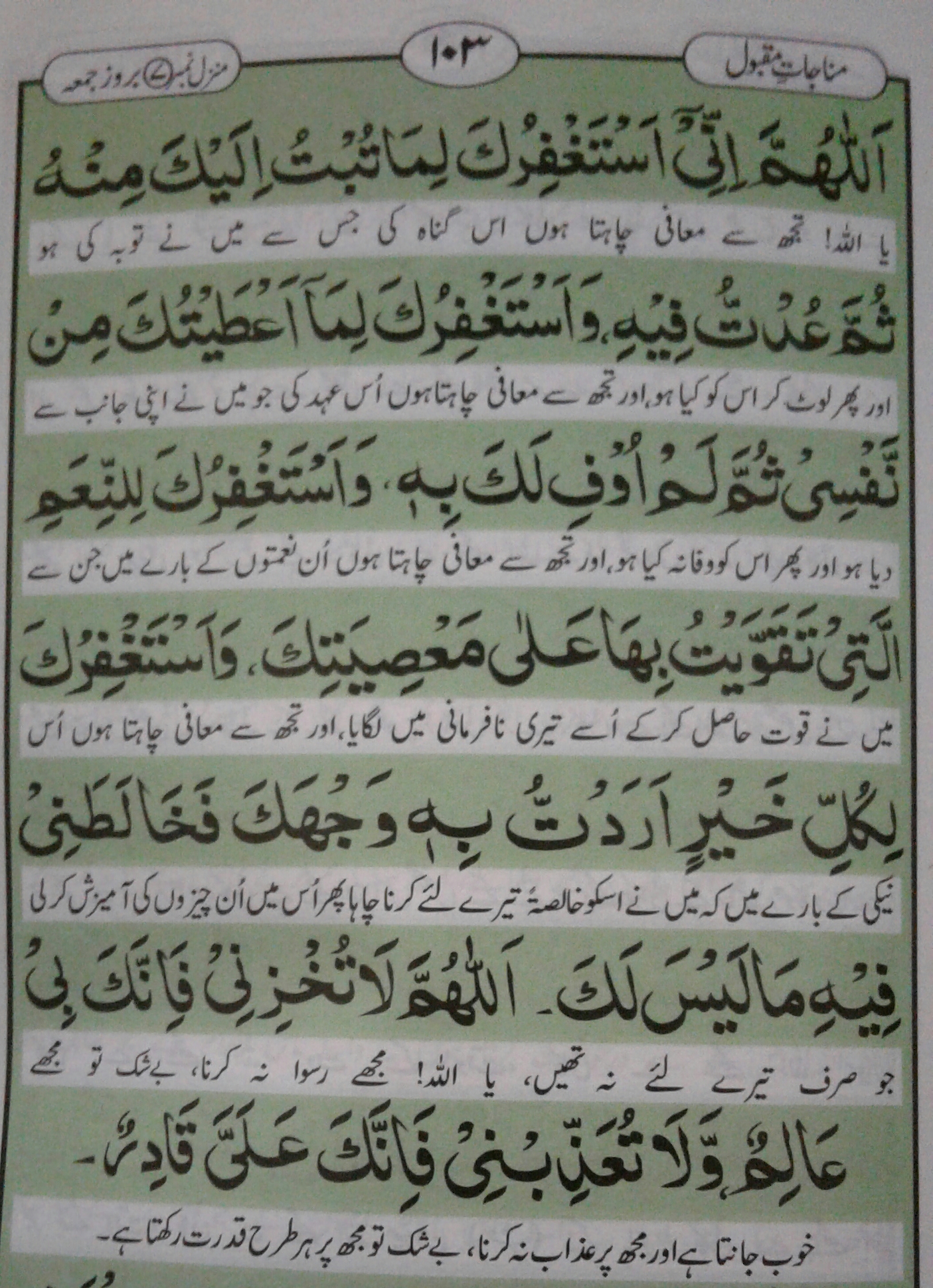 Source: Munajat e Maqbool (Youm ul Jumuah)