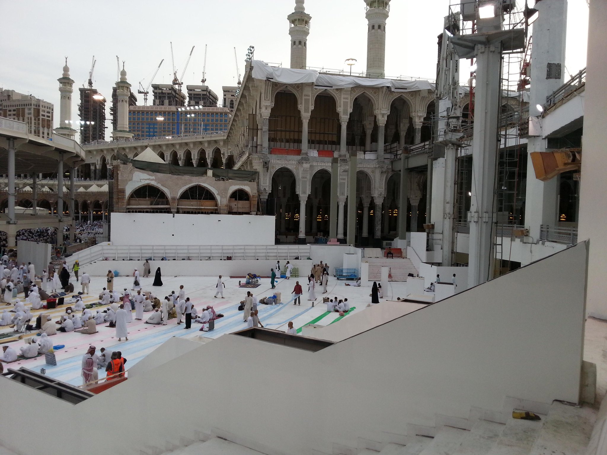 The temporary bridge would soon be expanded to two levels. The top level currently connects to the first floor of the Grand Mosque, while the lower level will be connected to the ground floor. The mataf expansion is expected to be completed by 2015.