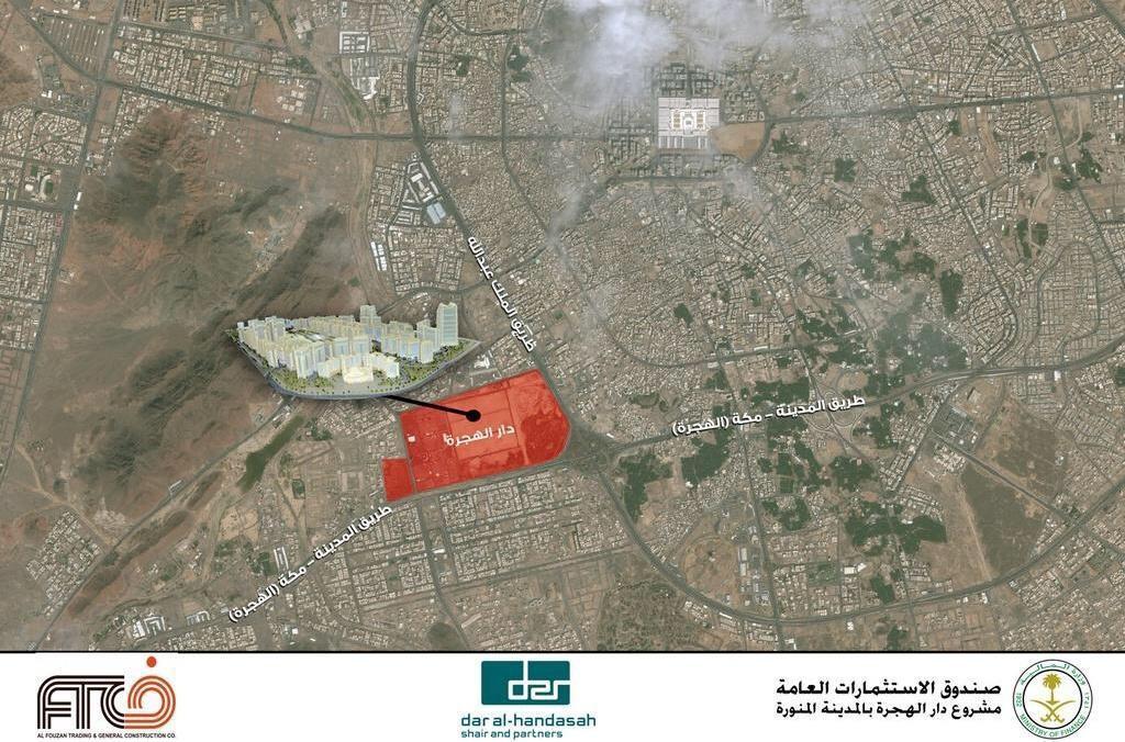The massive city covering an area of over 1.6 million square meters will accommodate 200,000 people. It is located 3 km to the west of the Prophet’s Mosque, 3 km from Meeqat, and 900 meters from Quba Mosque.