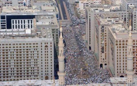 عدسة " واس" ترصد الكثافة البشرية في المسجد النبوي على ارتفاع أعلى من 1000قدم (واس) 23-12-1435