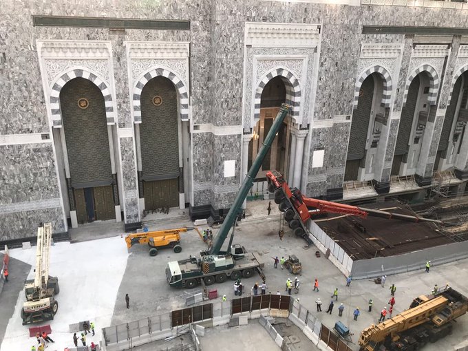 Small crane collapses in a work area in the Grand Mosque