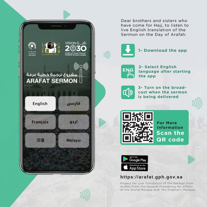 • Contains tracking and location device features to guide the pilgrim during Hajj and help locate someone lost.