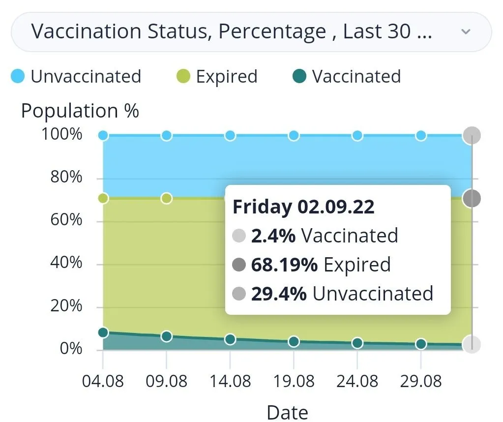 - The Israeli people aren’t stupid. They have figured out the vaccines are “unsafe and ineffective” (my new tagline for the vaccines… what do you think? catchy isn’t it?) and are no longer complying with government directives to be vaccinated. Just 2.4% of the Israeli population is “in compliance” as of Sept 2, 2022: